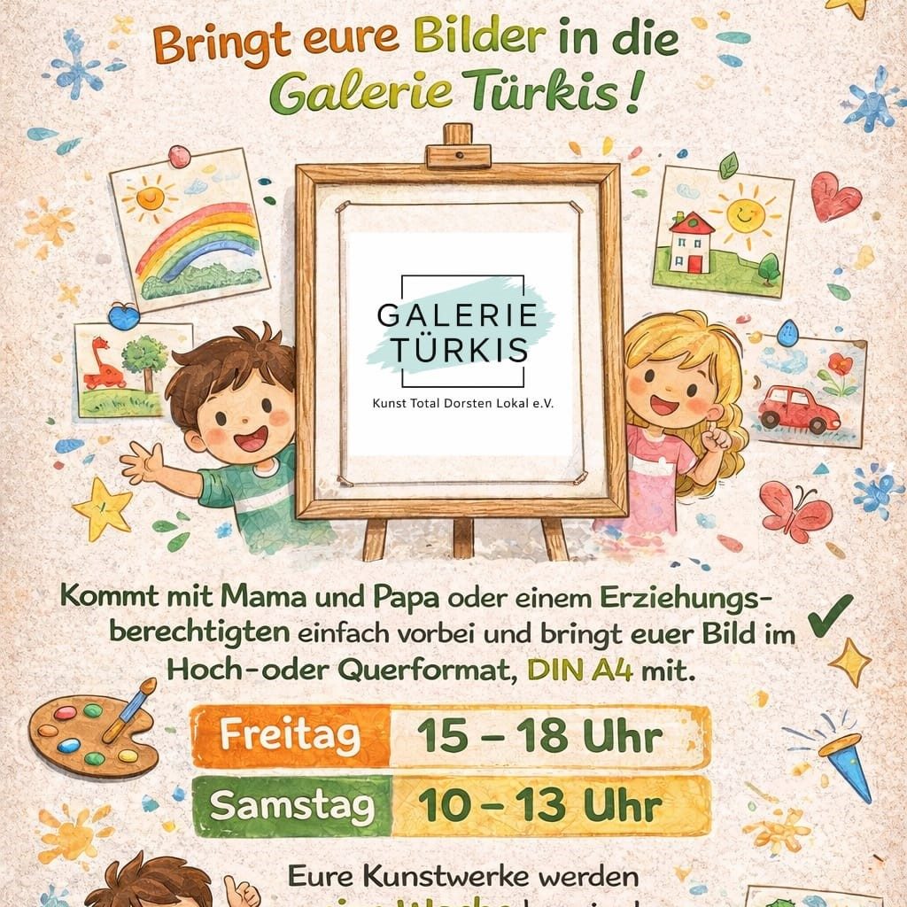 Eure Kunstwerke werden eine Woche lang in der Galerie Türkis ausgestellt. Kommt mit euren Erziehungsberechtigen einfach vorbei und bringt euer Bild mit! Wir freuen uns auf euch!