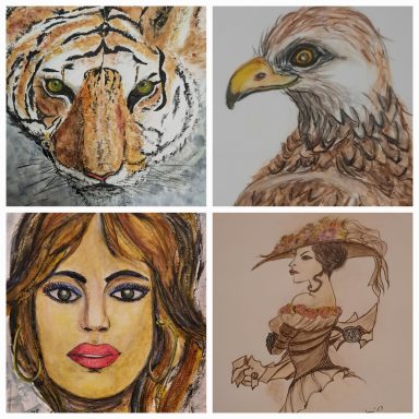 Begeistert war sie schon immer von der Natur und seinen Gebilden und wollte sie auf Papier einfangen. Sie portraitiert Tiere und Menschen, aber sie experimentiert ebenso gerne mit Farben und Formen im abstrakten Stil und es darf auch mal poppig werden.